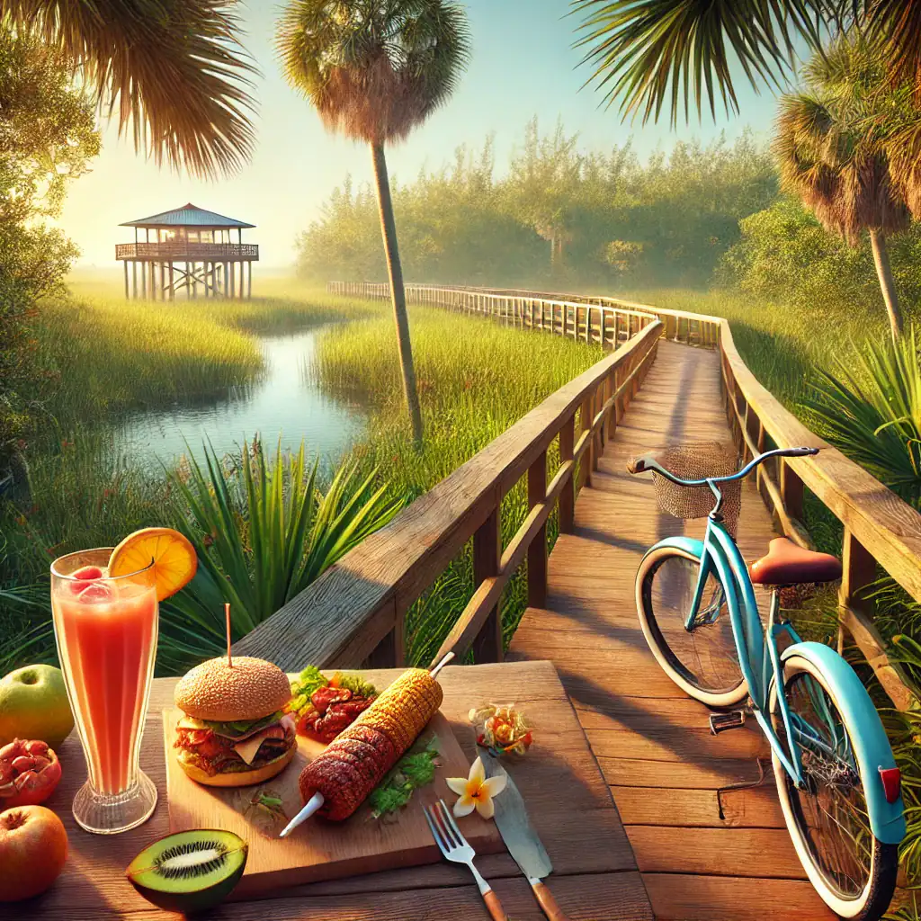 Once you’ve been involved with the whole Aerojet experience, you may be up for more of a nature experience. So the next stop, only a mile to a mile or two down the road, actually is the Everglades National Park and the Ernest Coe Visitor Center. When you pay your admission, it’s strongly encouraged to do go to the visitor center. They do have a tremendous amount of educational displays and films or brochures, collections by local artists and they will answer every question you may have about the Everglades so that certainly is worthwhile stopping in there. But of course for the first time visitor and even if you’re been have been there multitude of times, one of the most favorite sites, right near the visitor center is the Anhinga Trail. It’s a short trail less than half a mile in length. It’s about four miles from the formal entrance to the park and it starts at the at a Royal Palm Visitor Center with bathrooms and water. But this trail is a paved walkway and then portions of it are a boardwalk over the Taylor Slew freshwaters sawgrass Marsh there’s a tremendous amount of abundant wildlife from all types of alligators, turtles and hangers, herons, egrets, lots of grasshoppers, turtles, we’ve seen turtles laying eggs run alongside the walkway. It really is one of the most best places where you can see the most amount of wildlife close up. It is one of the most popular trails in the park. So I would urge everyone to get there early. And you might want to even avoid the busiest days of the year. It is notable and you can find some videos of this on YouTube. In 2003 tourists witnessed a fight between an alligator and a Burmese python that went on for almost a day until a larger alligator join the fight and the snake escaped. There was quite a bit of video news coverage of that. It’s interesting thing to watch. There’s other bike trails that are in and around the area too. And hiking trails as well that you can take advantage of. But if you’ve been to Aerojet for an hour or two or three, and then the Anhinga Trail it’ll be you’ll be hot. You might have any you might be in need of refreshments.
